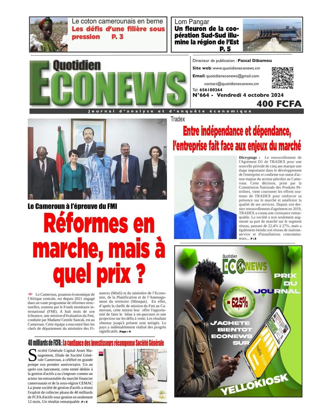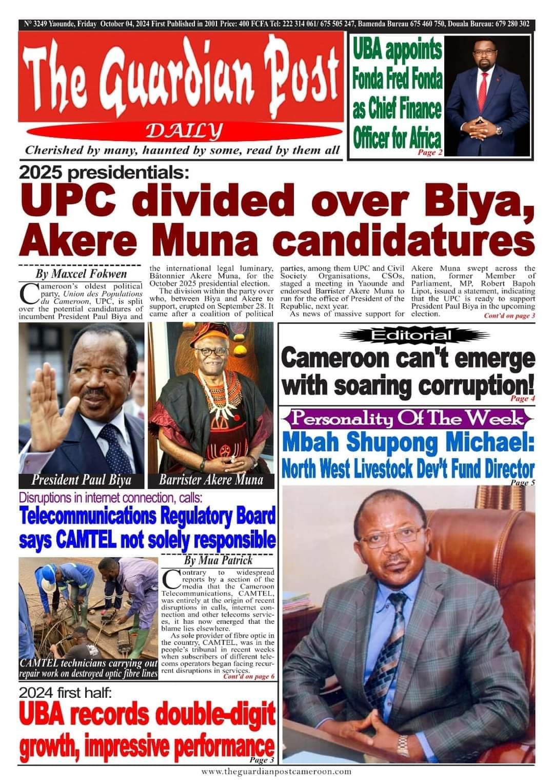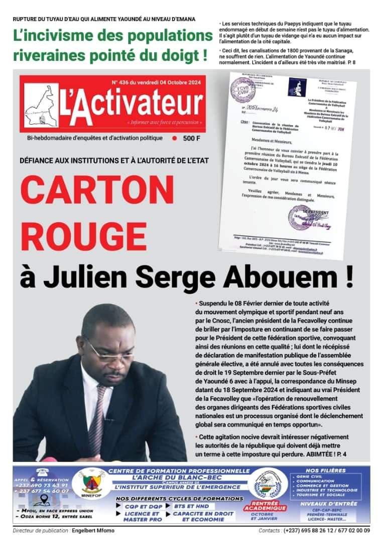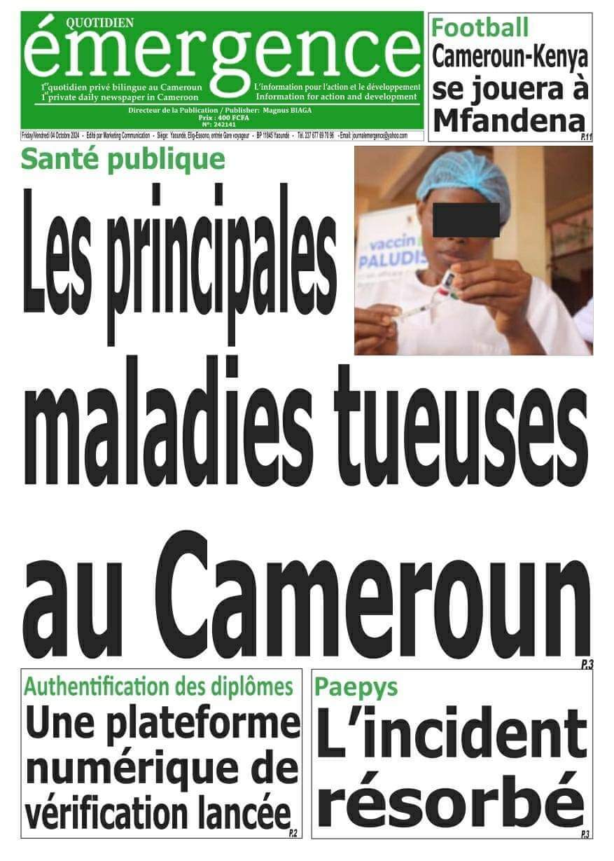Gros Titres : Cameroun Press vous propose les #Unes des journaux de ce Vendredi 04 Octobre 2024, présents dans les kiosques.