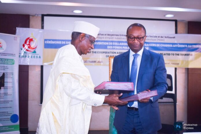 Le 4 décembre 2025, une étape clé a été franchie pour le développement des petites et moyennes entreprises (PME) au Cameroun, avec la signature d’une convention entre le Ministre des PME, de l’Économie Sociale et de l’Artisanat (MINPMEESA), Achille Bassilekin III, et le Directeur Général Adjoint de la Banque Camerounaise des PME (BC-PME), M. Amadou Haman. Cet accord, paraphé à l’Immeuble Emergence de Yaoundé, marque un engagement fort du Gouvernement pour accompagner les opérateurs économiques locaux, en particulier ceux des secteurs agro pastoraux et halieutiques, à travers le Plan Intégré d’Import-Substitution Agropastoral et Halieutique (PIISAH).